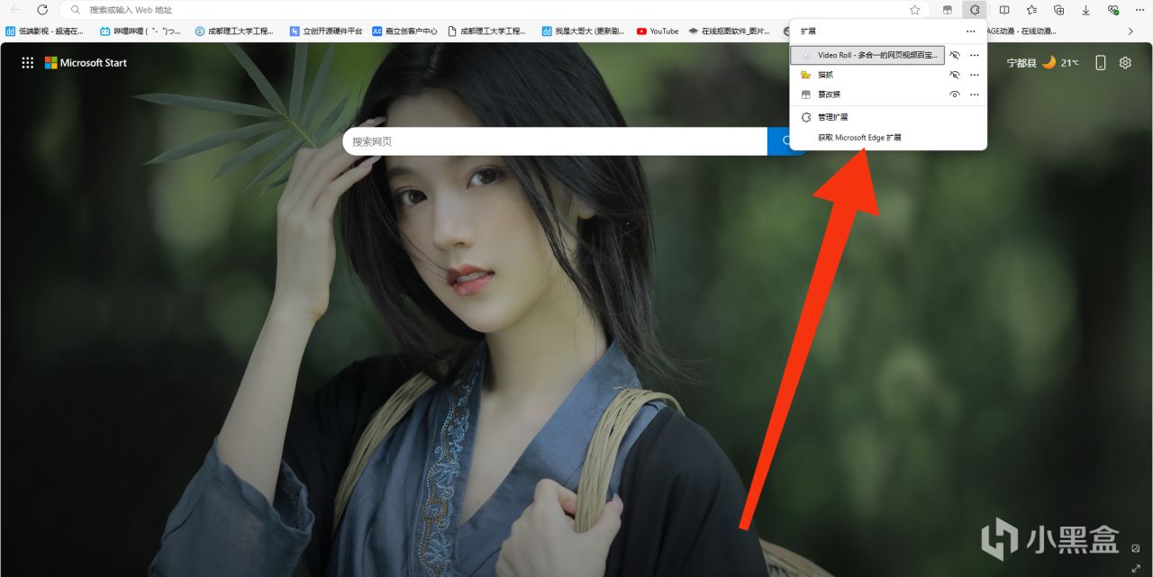 先來到瀏覽器首頁,右上角有個擴展,再點擊獲取擴展