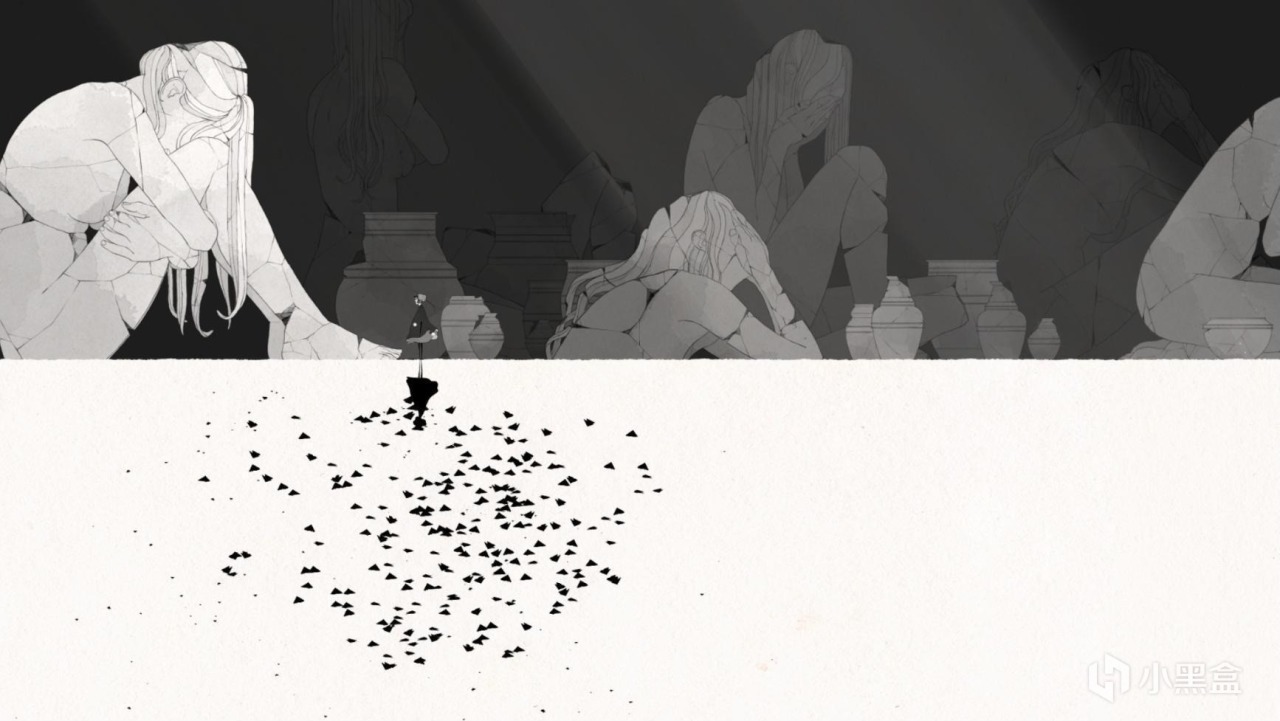 我们马上就见证了神秘雕像从破碎到崩塌,Gris失声,世界也随着她的缓缓坠落而逐渐失去所有的色彩。