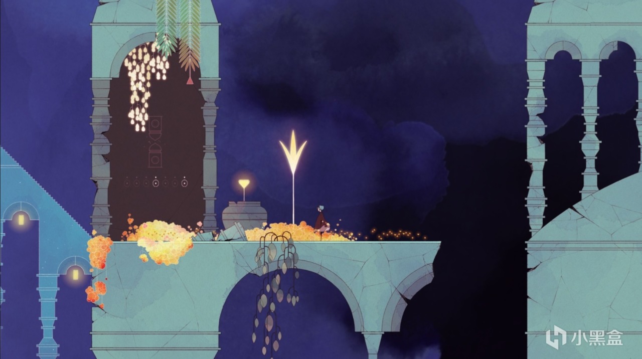 游戏的核心难度最多只停留于各项能力与关卡机制间的配合使用以及难度偏低的平台跳跃部分,十分友好。这般操作上的简化使得玩家更容易进入“心流”,沉浸在这场第九艺术带来的视听盛宴中。