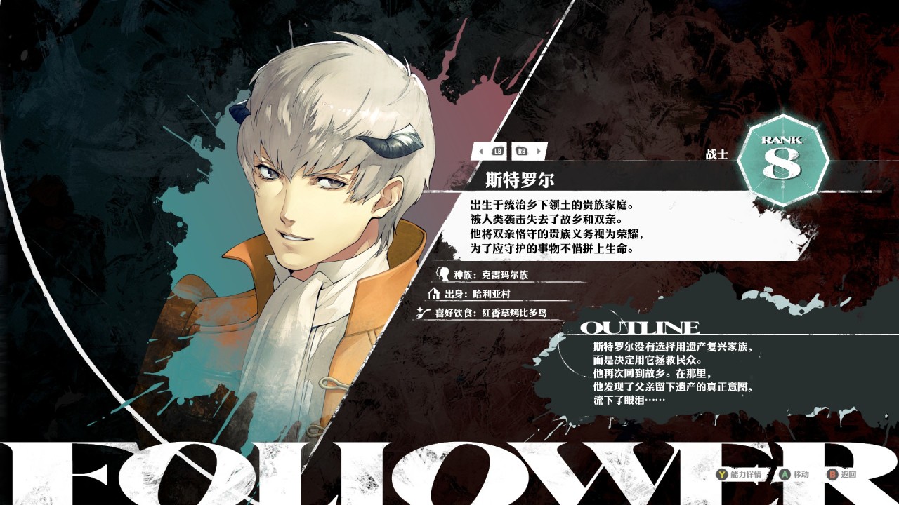 遊戲中不同的種族,不同的人都有屬於自己的價值觀觀,這也是我個人認爲遊戲的角色rank劇情設計的比較出彩的原因,基本將所有人的性格特點人物形象塑造的很鮮明,所處的立場不同,思考問題的方式也會不一樣。比如阿隆索劇情對人心的博弈,斯特羅爾作爲貴族的擔當,霍肯伯格作爲騎士的信條,灰雨作爲父親的覺悟等等。可以看出rank劇情是被用心設計的,也算是劇情方面本作的加分項了。