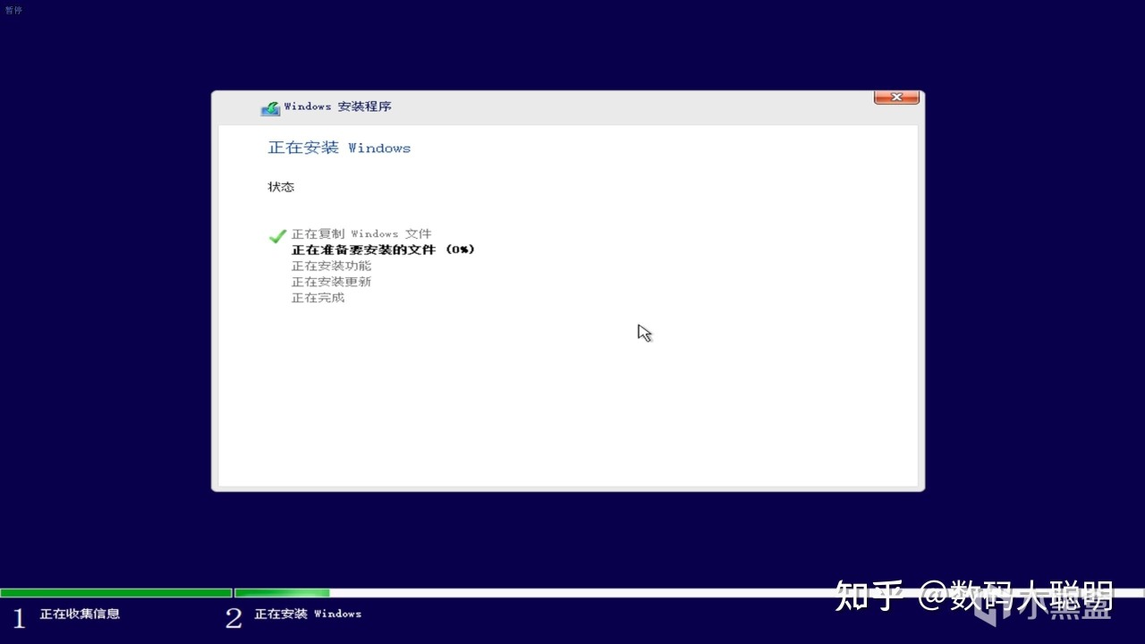 此時電腦將我們製作的引導盤中的數據寫入系統盤,等待這個頁面結束