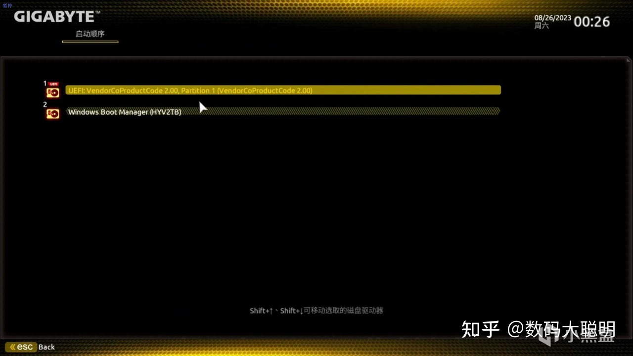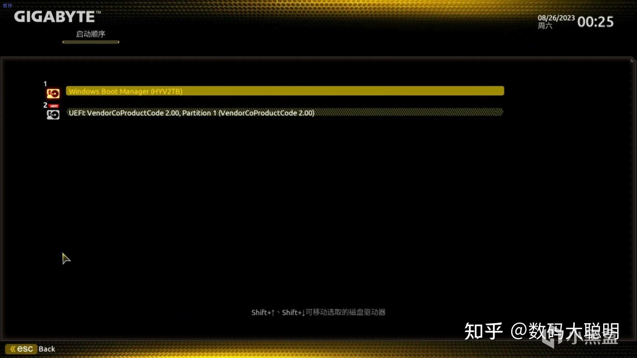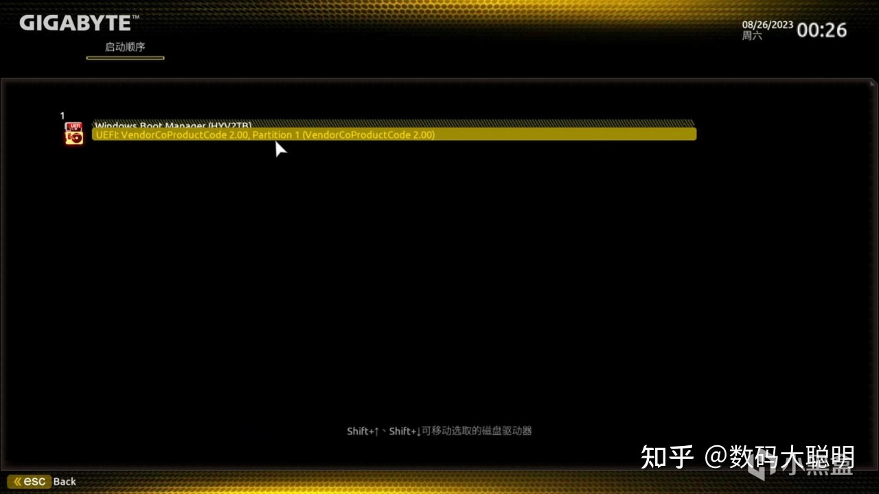 現在UEFI引導盤成爲了第一啓動項,按鍵盤ESC鍵退出啓動順序的設置頁面