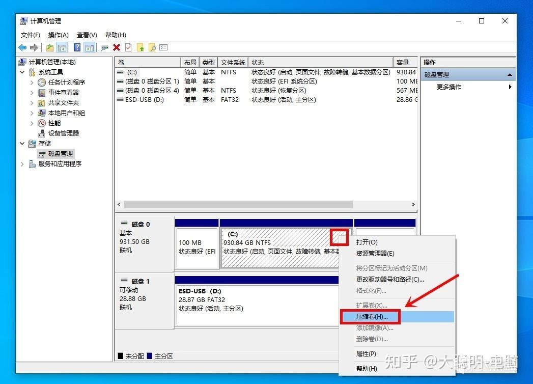 想分哪個盤,就點哪個盤;右鍵點擊,在彈出的菜單中選擇「壓縮卷」