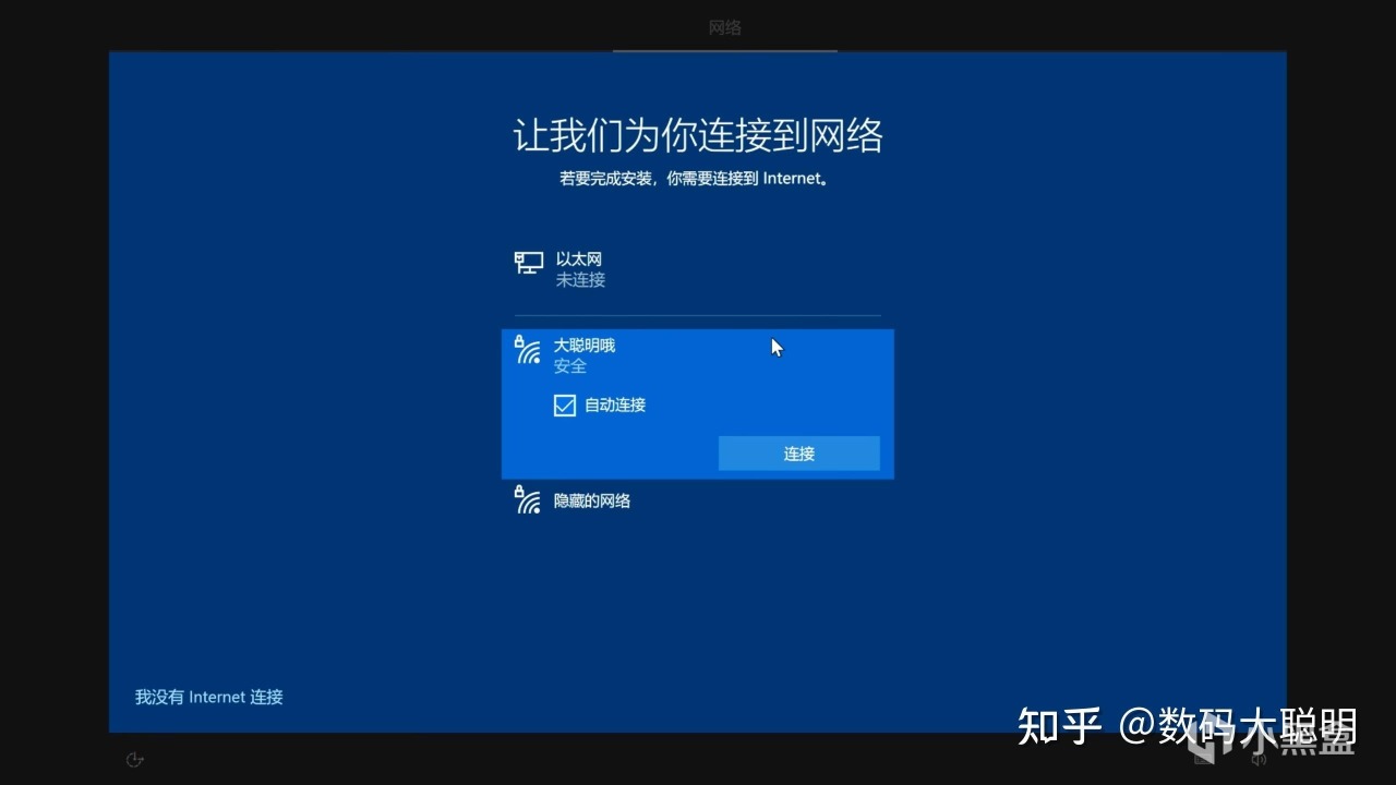 如果已經插上網線,這裏是不會顯示的。使用無線網需要進行網絡連接操作,保證系統的完整安裝