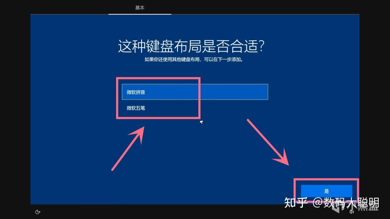 默認鍵盤選擇,正常都是拼音,如果你習慣了五筆就選擇五筆,點擊「是」
