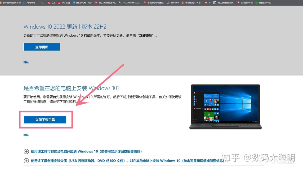 根據我個人經驗,建議打開迅雷進行下載,網頁下載器有那麼幾次無法成功下載。在此頁面點擊「立即下載工具」,下載一個應用程序「MediaCreationToolxxxx」,下載後雙擊打開該程序