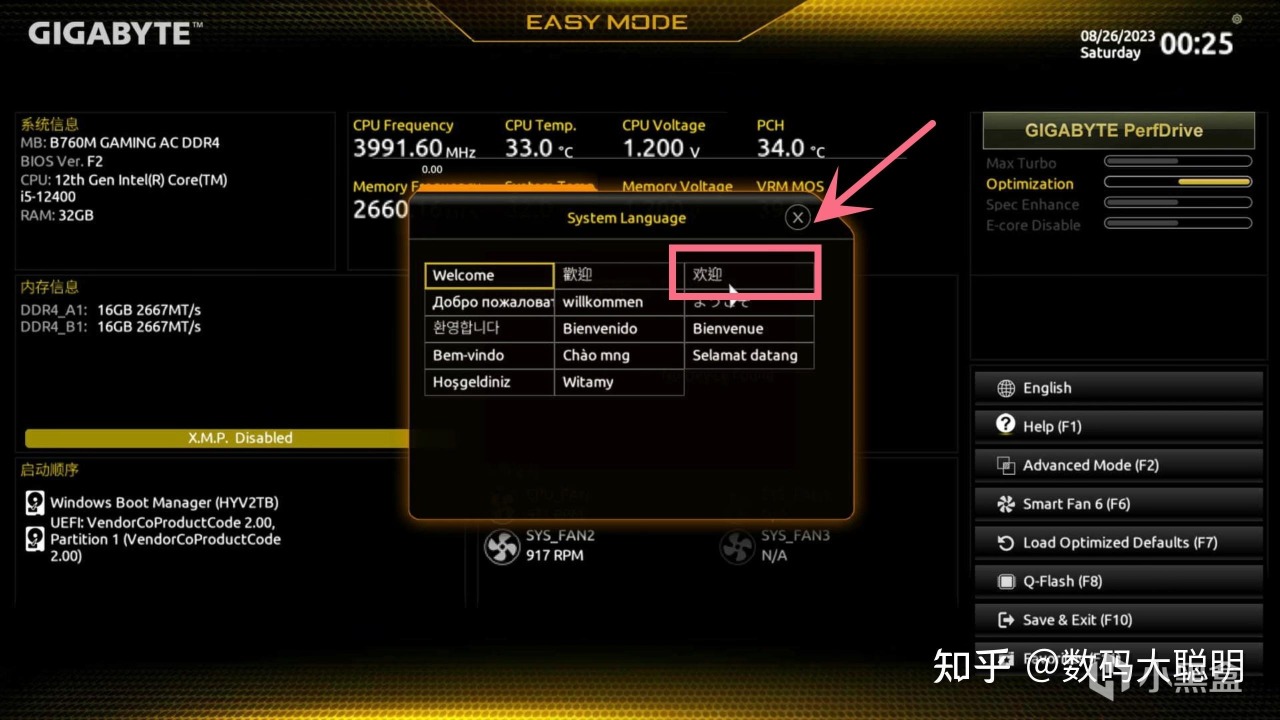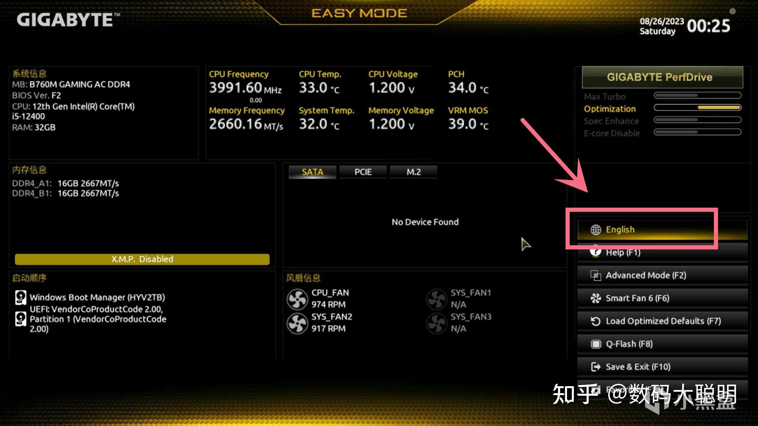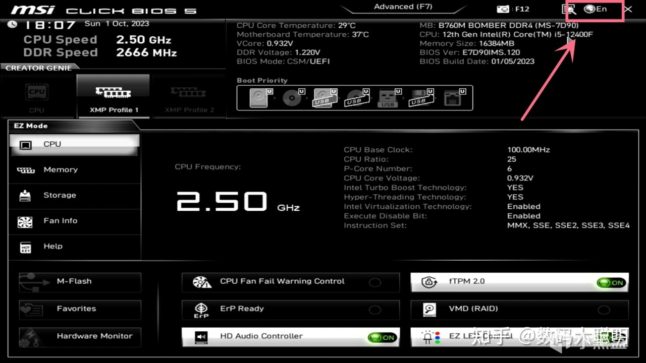 微星的BIOS界面基本也都是這個樣子,即使是高端系列,整體框架也是相同的。首先還是根據習慣,右上角有語言類型選擇