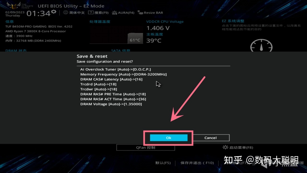 接着按鍵盤F10按鍵,點擊OK。華碩主板引導盤設置結束,等待系統自動重啓即可;