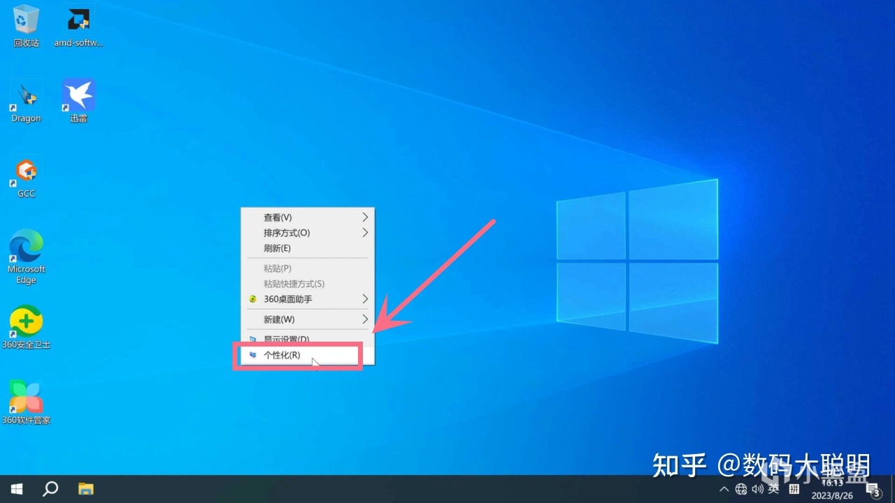 鼠標右鍵在桌面空白的地方點擊一下,就會彈出來一個菜單,點擊「個性化」