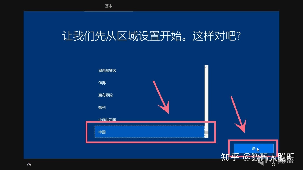 開始選擇使用區域,一般默認是直接中國,點擊「是」