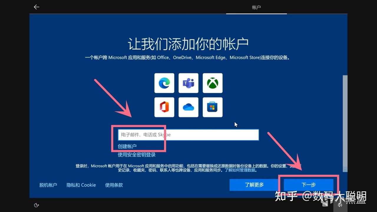 在添加賬戶的頁面,這裏講一下邏輯。其實和我們正常使用愛奇藝、網易雲什麼APP是一樣的,也就是需要註冊一個微軟的賬戶,可以使用你的郵箱地址、手機號碼進行註冊。
