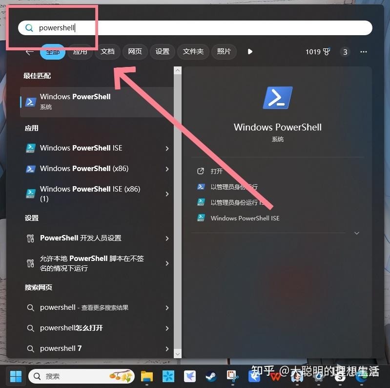 在菜單的搜索框上輸入【powershell】,鼠標點擊下方的應用選項【Windows PowerShell】