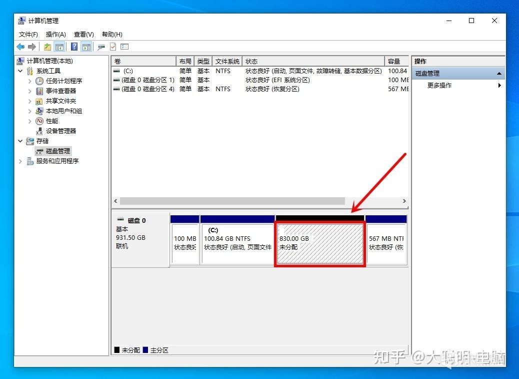 壓縮結束後,原磁盤模塊中多出一個830GB的空白部分;