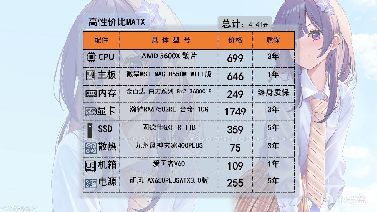 对了,显卡方面,我倒是看到有群友拿到了1400块的xfx,所以这套配置的实际价格不定,看你或者up手上能拿到什么价了。。。。