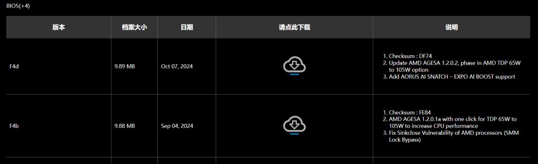 我們需要先要升級主板BIOS到AGESA 1.2.0.1a微碼以上版本,實際上現在最新的微碼已經是AGESA 1.2.0.2了,直接升級它就能支持銳龍7 9700X的105W模式。