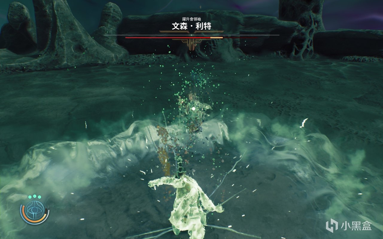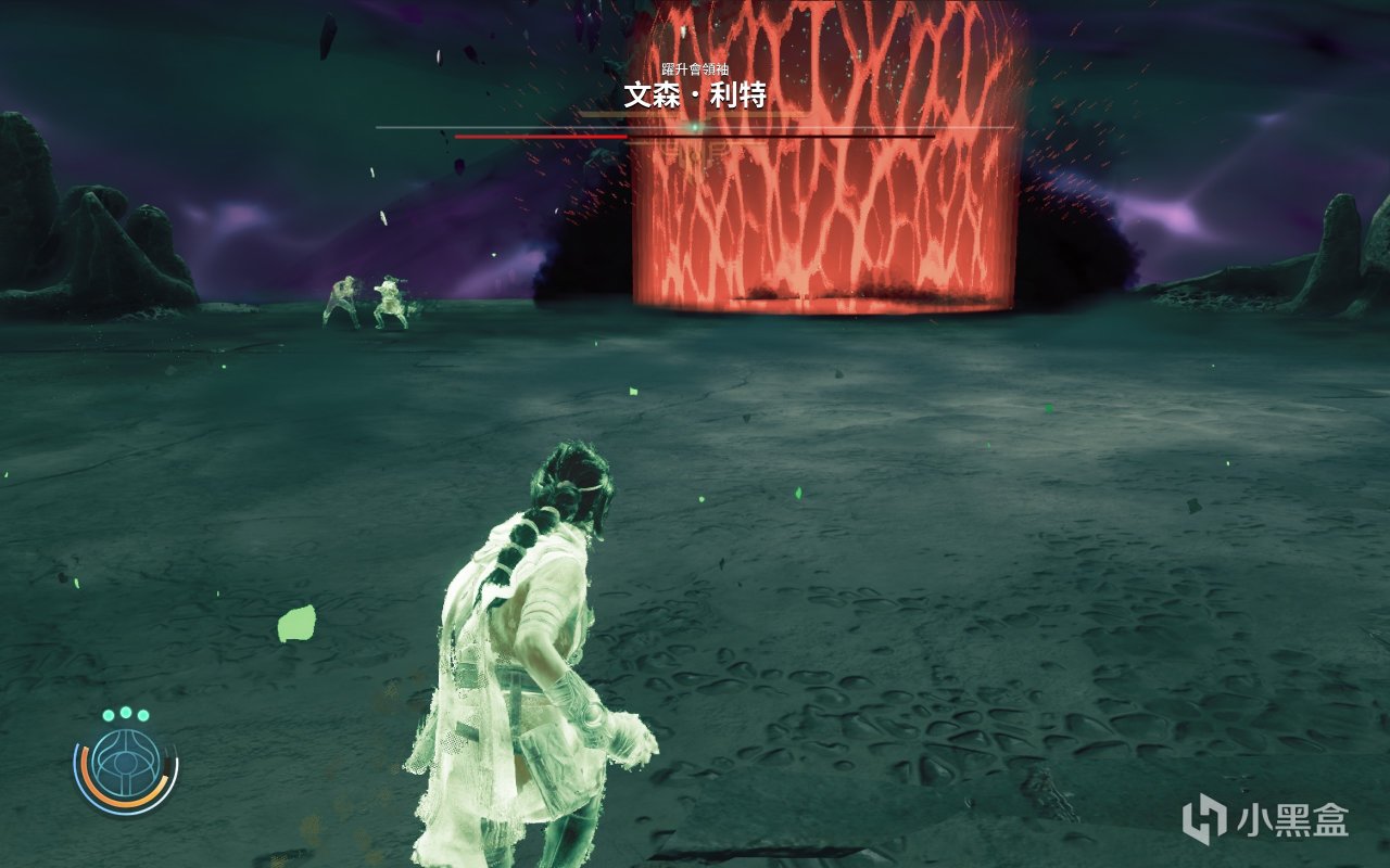 文森會給自己上一個護盾,類似黑猴楊戩的護盾,帶盾的時候是霸體,不受原力影響,大幅減傷,受到的魂惑(擊暈)效果累計也大幅減小