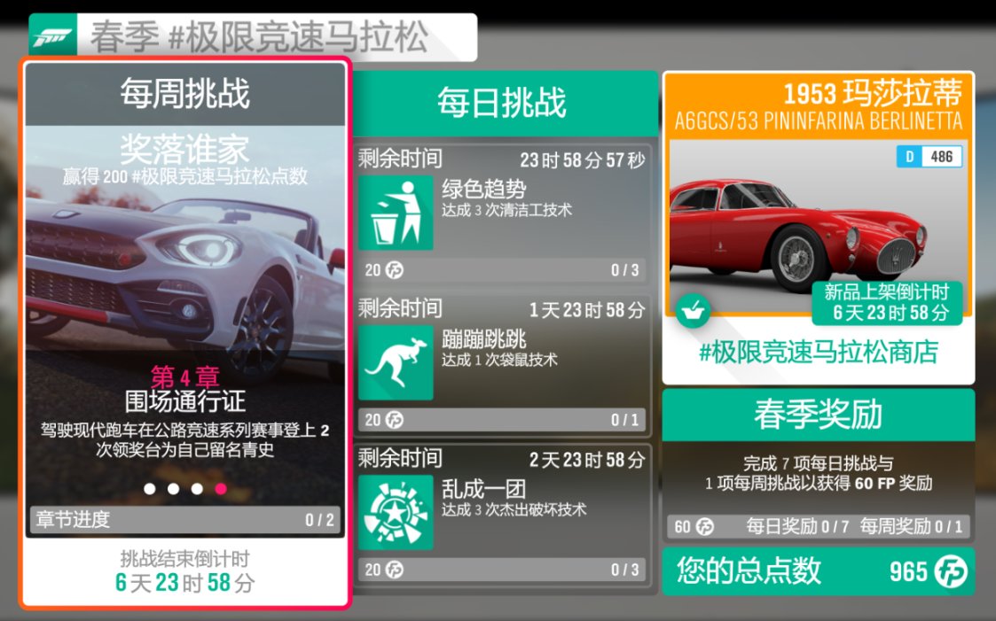 大家好,我是高桥,今天给大家带来地平线4春季赛的赛事指南,本周是s51赛季最后一个季节赛,奖励中规中矩,大家加油肝!