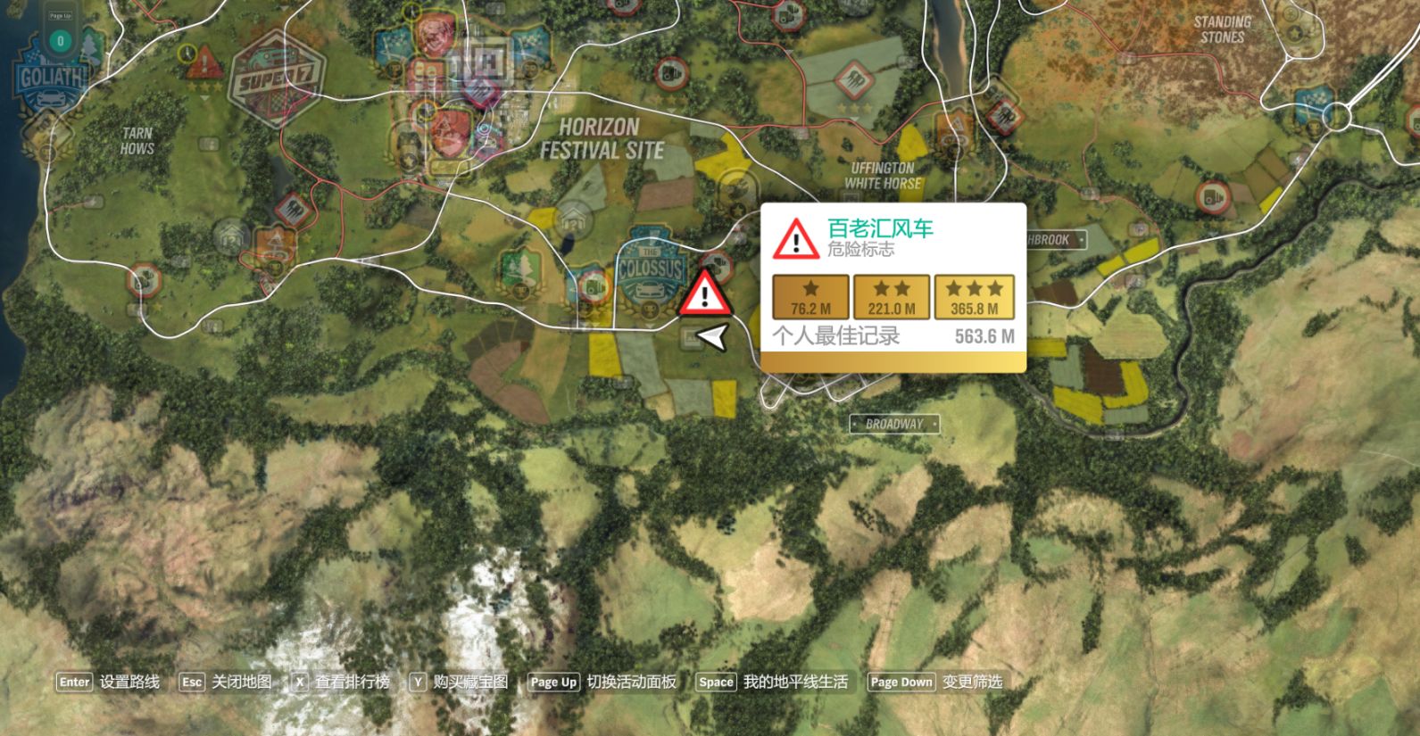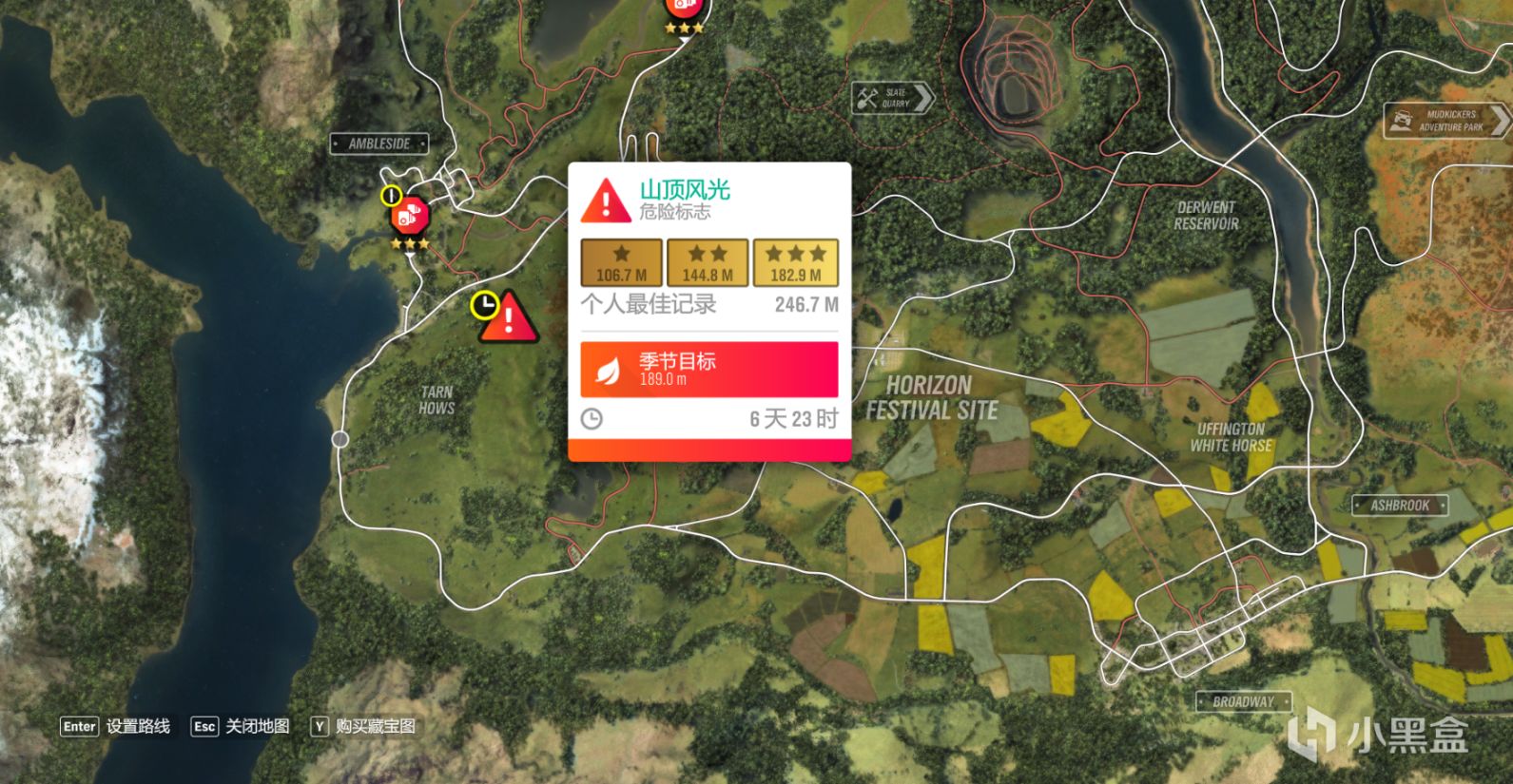 危险标志:山顶风光,完成奖励为超级抽奖(法拉利599xe、蛇王)