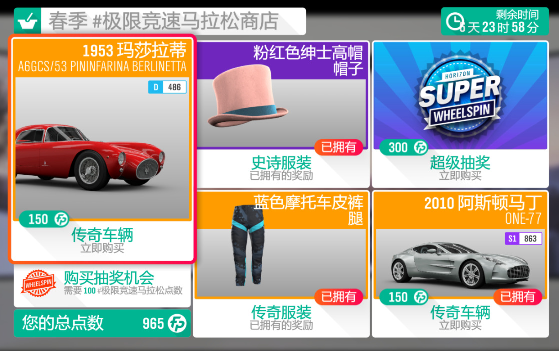 3、季节游乐场游戏#春季赛事(限制A(800)-复古跑车)