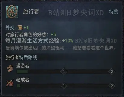 A:有的,旅行者特質和流浪者特質都會有加成,其中特質爲10%加成,每個特質路徑點加20%,最高50%。
