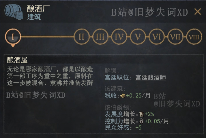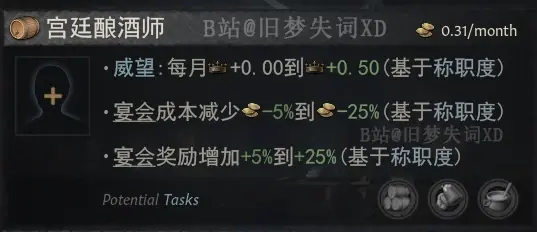 新版本還有一項小更新便是新的建築與宮廷職位,主要是爲天主教設計的,不過任何擁有新文化傳統的角色都可以使用。在默認情況下,這座建築只會存在於天主教教堂下,而擁有新文化傳統的角色則可以選擇建造在城市中。該建築的目的是增加伯爵領全境的加成,而非單一地塊的加成,同時擁有該建築的角色將會解鎖一個新的宮廷職位——宮廷釀酒師。