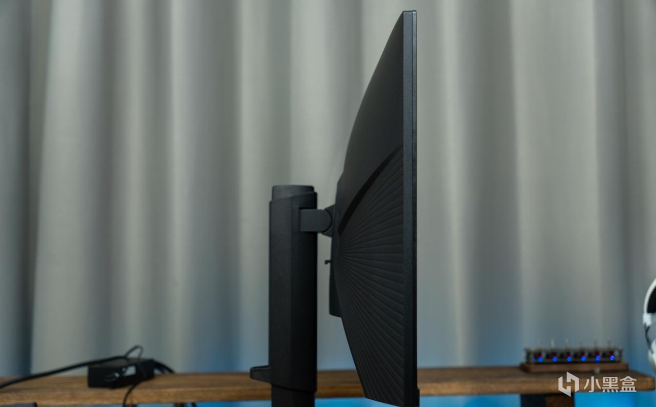 顯示器背部爲弧線形設計,厚度適中,頂部爲了適配屏幕掛燈曲率稍大,小米\明基的屏幕掛燈均可以完美適配。