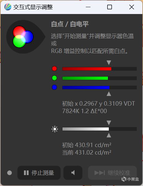 默認模式下,SDR最高亮度430nit,對比度900:1,色溫7700K,肉眼明顯感覺偏冷。