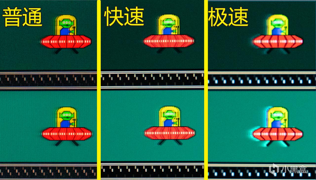 -極速模式:有大量過沖鬼影,平均初始響應時間2.34ms,但畫面屬於不可用的狀態。根據刷新率加權MPRT時間5.52ms。