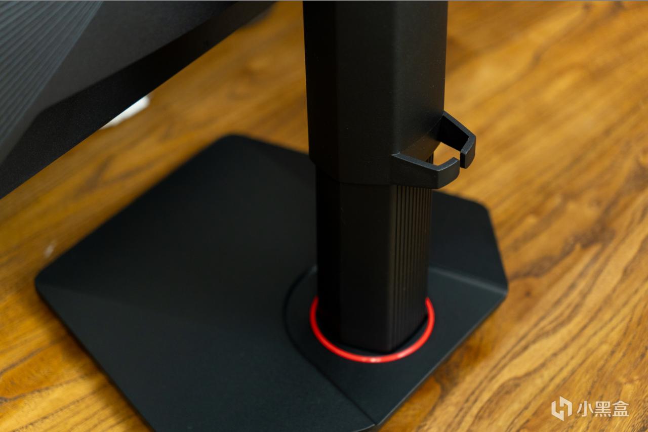 顯示器支架爲平板式,並有微微的凸起,相比常規的三角市支架解決不少桌面空間,好評。