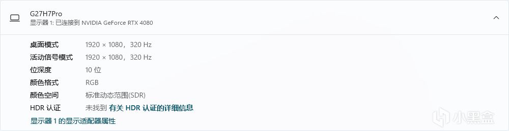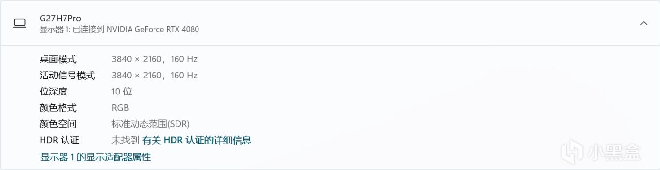 用自帶的DP線連接,兩種模式都可以跑滿10Bit全分辨率輸出。