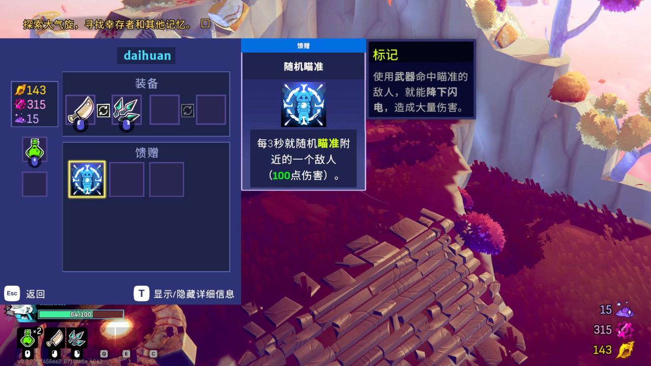 純近戰就是用這兩種武器組合初始武器只需要A三下腦袋上面出現標識就可以進行交替攻擊(類似死亡細胞的切手技)(如果新手關一命通關且打敗轉轉樂就會直接開啓交替攻擊哦,後續關卡就更容易了