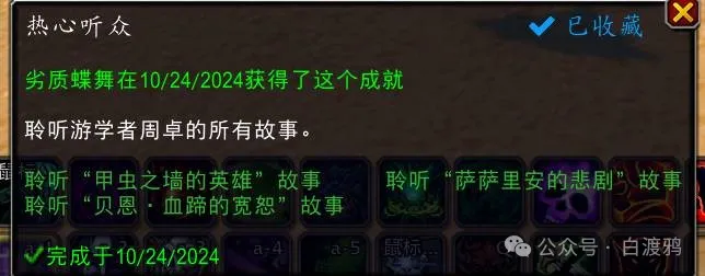击败任意一个旧世界BOSS即可获得成就,嗯...实测死了也会跳成就...