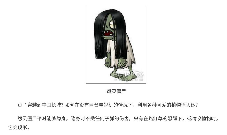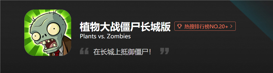 在《植物大戰殭屍長城版》中,中國殭屍經典形象--清朝官服殭屍被植入了遊戲,具有催眠植物的特技;曾經統一六國的秦始皇也從皇陵中爬起,化身企圖越過長城喫大腦的殭屍BOSS。