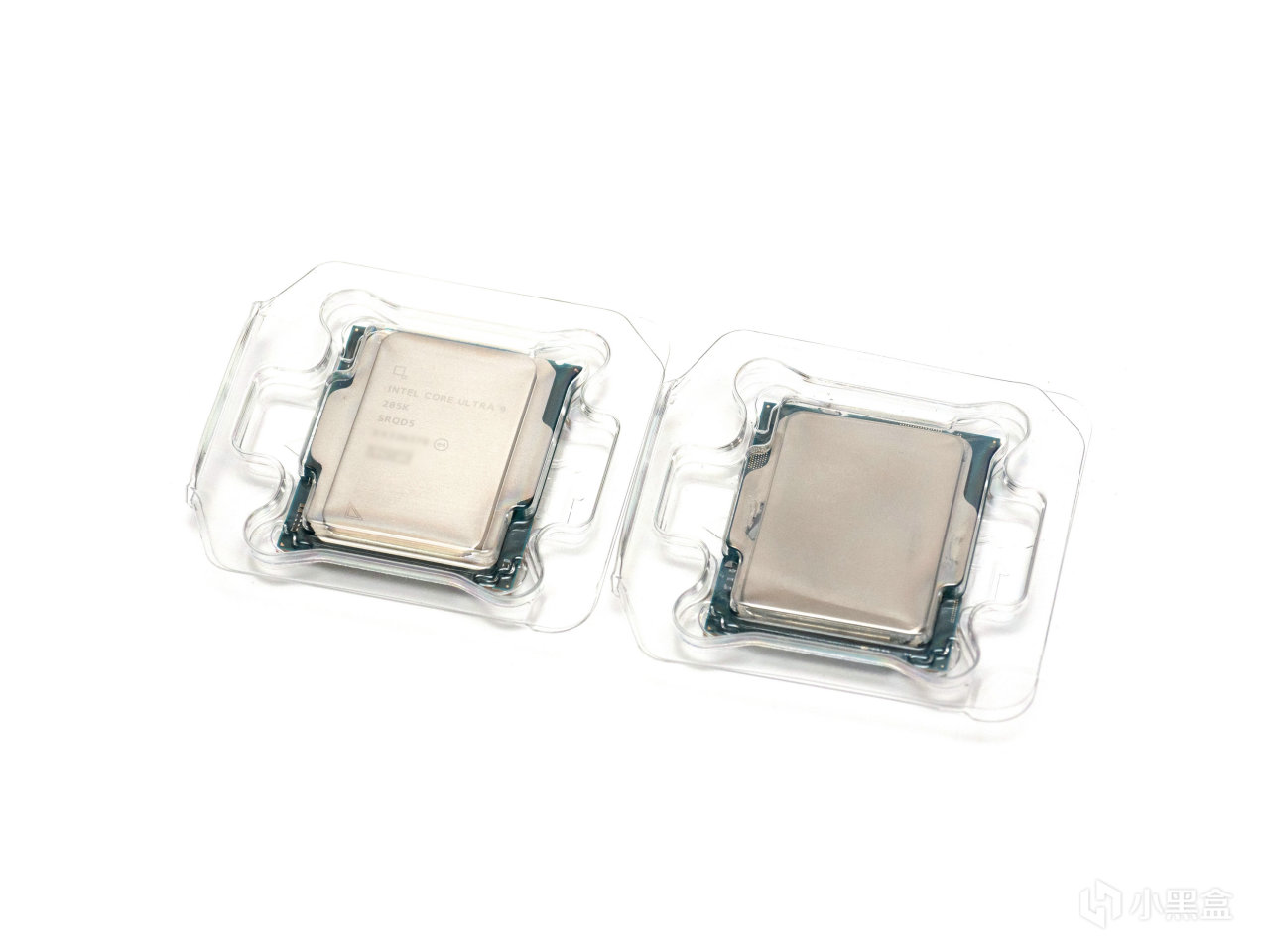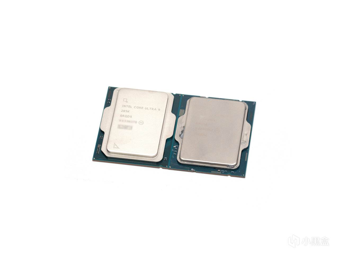 CPU的底板PCB也和上代完全一致,顶盖稍微长了一点,高度一致,从背面的触点来看,主要是在LGA1700一圈增加了一部分触点,中间一圈也补了一些,因此虽然是LGA1851,但是依然兼容上代的LGA1700散热器,这点好评!
