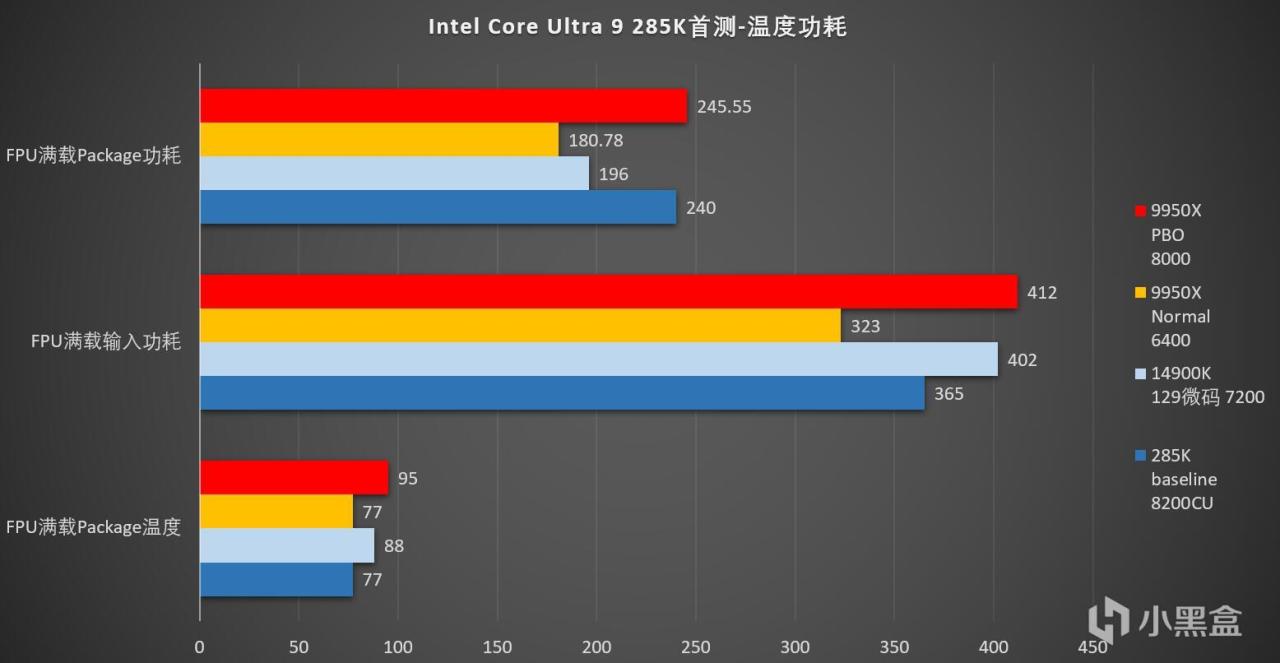 这次我们先来看Core Ultra 200S这次进步最大的方面吧:温度和功耗!得益于最新的Intel 3工艺以及去掉了超线程,还有严格遵守Baseline的默认设定,再加上新龙神3Extreme散热器的共同压制,成功地把TDP 125W、实际功耗240W左右的U9 285K压制到了80摄氏度以内,和9950X默认相当,这几年Intel满载温度最低的一次!平台功耗上也......略高于默认状态下的9950X,但是比baseline的14900K低了40W左右,确实有了不小的进步!