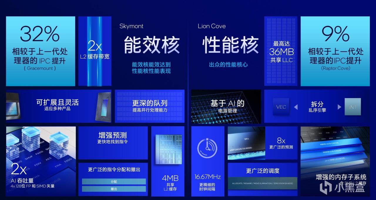 从桌面平台的角度来看,这代Core Ultra算是像12代Alder Lake一样完全更新的Tick+Tock一代,不仅工艺从Intel 7升级为移动平台的先进Foveros 3D封装,结合了Intel 3、TSMC N5P、TSMC N6等等不同工艺封装在一起,相比14代Core不论是在制造工艺、CPU架构、核显架构、IO接口等等都进行了全面的更新,搭配的主板换成了LGA1851接口的800系列,内存则支持新的高频率内存CUDIMM DDR5,以及增加了独立的AI处理单元NPU,最重要的则是能耗比终于达到和竞品差不多的水平了......
