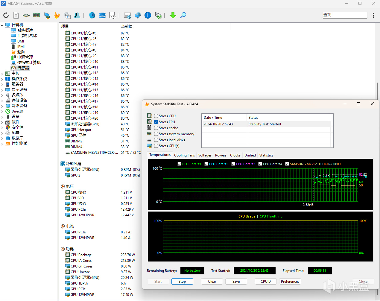 最大的變化其實在於功耗,i7-14700KF我記得首發測試的時候,烤機時功耗直接飆到了300W以上,溫度也直接衝到了100℃,這次Ultra 7 265K的功耗溫度表現就很喜人了,滿載功耗223W,CPU核心溫度也就80℃出頭,相信很多人不在意桌面端的電費,但是功耗降低對於散熱的要求會降低,這代U7我覺得風冷就可以壓住,除此之外在CPU高負載運行時,散熱風扇噪音表現也會更好。
