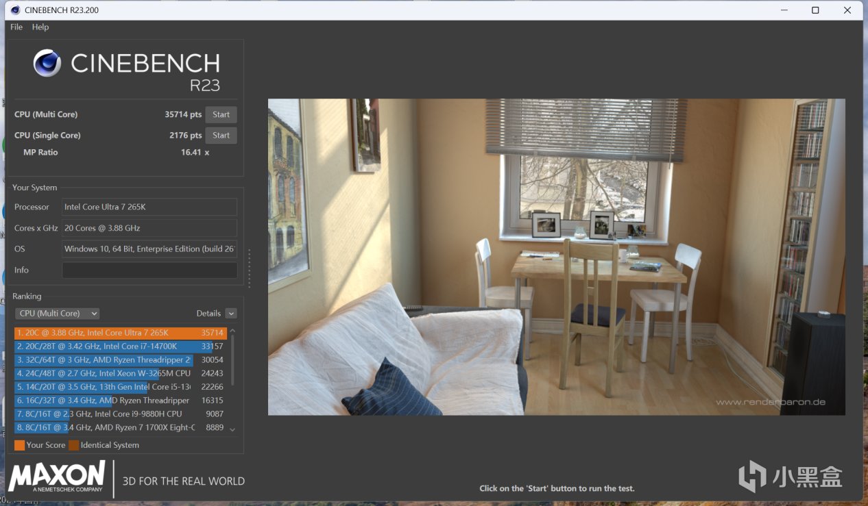 U7-265K R23 單線程跑分2176,多線程跑分35714