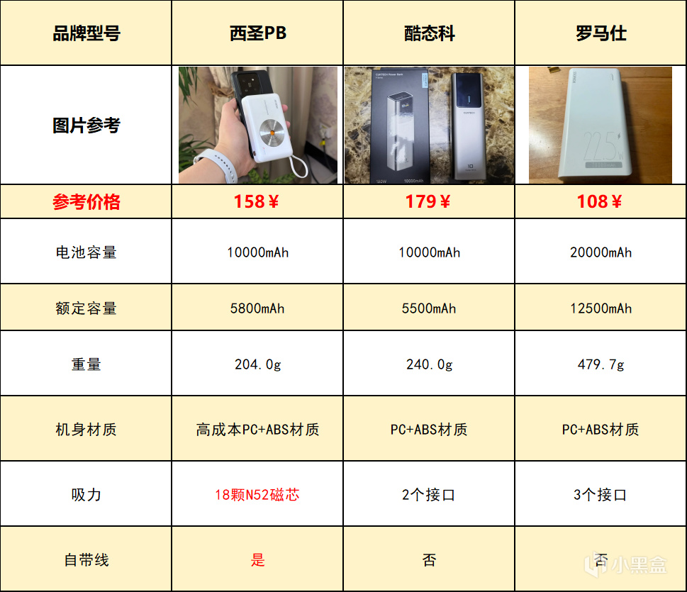 一、3大熱門款充電寶基本信息介紹