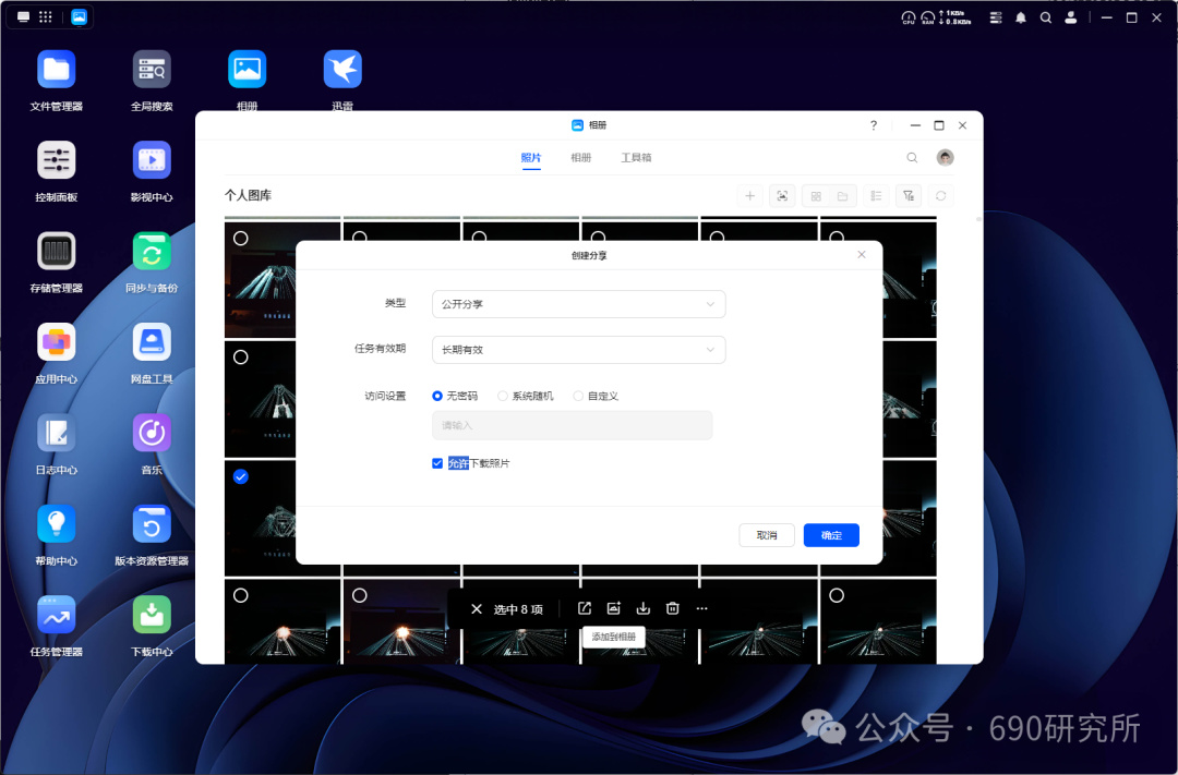 根據綠聯更新預告中說的,這次更新後相冊分享的圖片可以支持預覽圖查看,並且選擇單獨的文件下載,支持查看圖片信息。那我們這也來試下。
