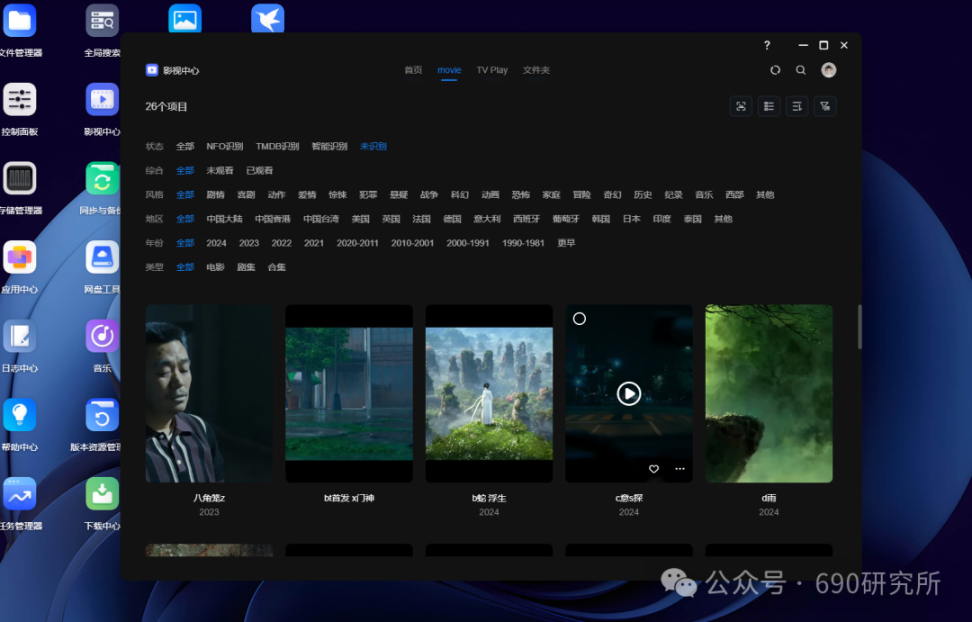 那現在影院中新增NFO識別、TMDB識別、智能識別以及未識別篩選選項。想要找出哪些沒有識別,直接點一下未識別即可篩選出來,更快速。(不過綠聯這個影院的識別準確率還是需要進一步優化!還得多多敲打下程序員)