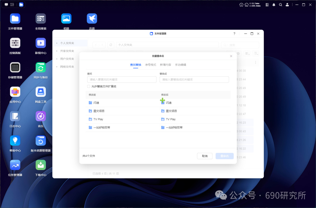 同時也新增了更符合操作邏輯的功能,支持多重命名等等,綠聯UGOS Pro的進步還是有目共睹的,真的可以算是個養成系的NAS系統,希望後續的優化速度以及功能上新更快一點吧。