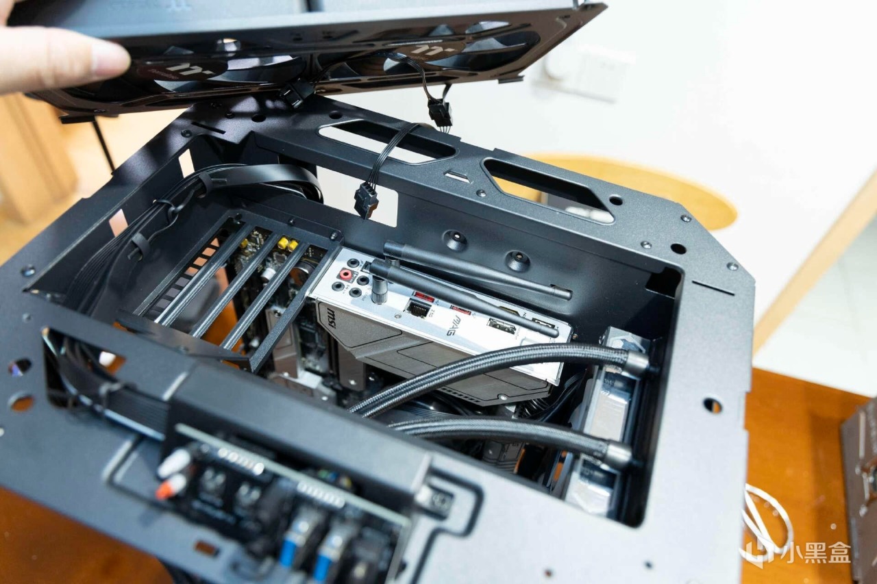 上置IO面板空間非常巧妙,使用傳統WIFI天線也能完美隱藏。不過同樣的,由於IO面板被徹底隱藏,所以經常插拔設備會有些麻煩,每次都要打開頂蓋進行操作。