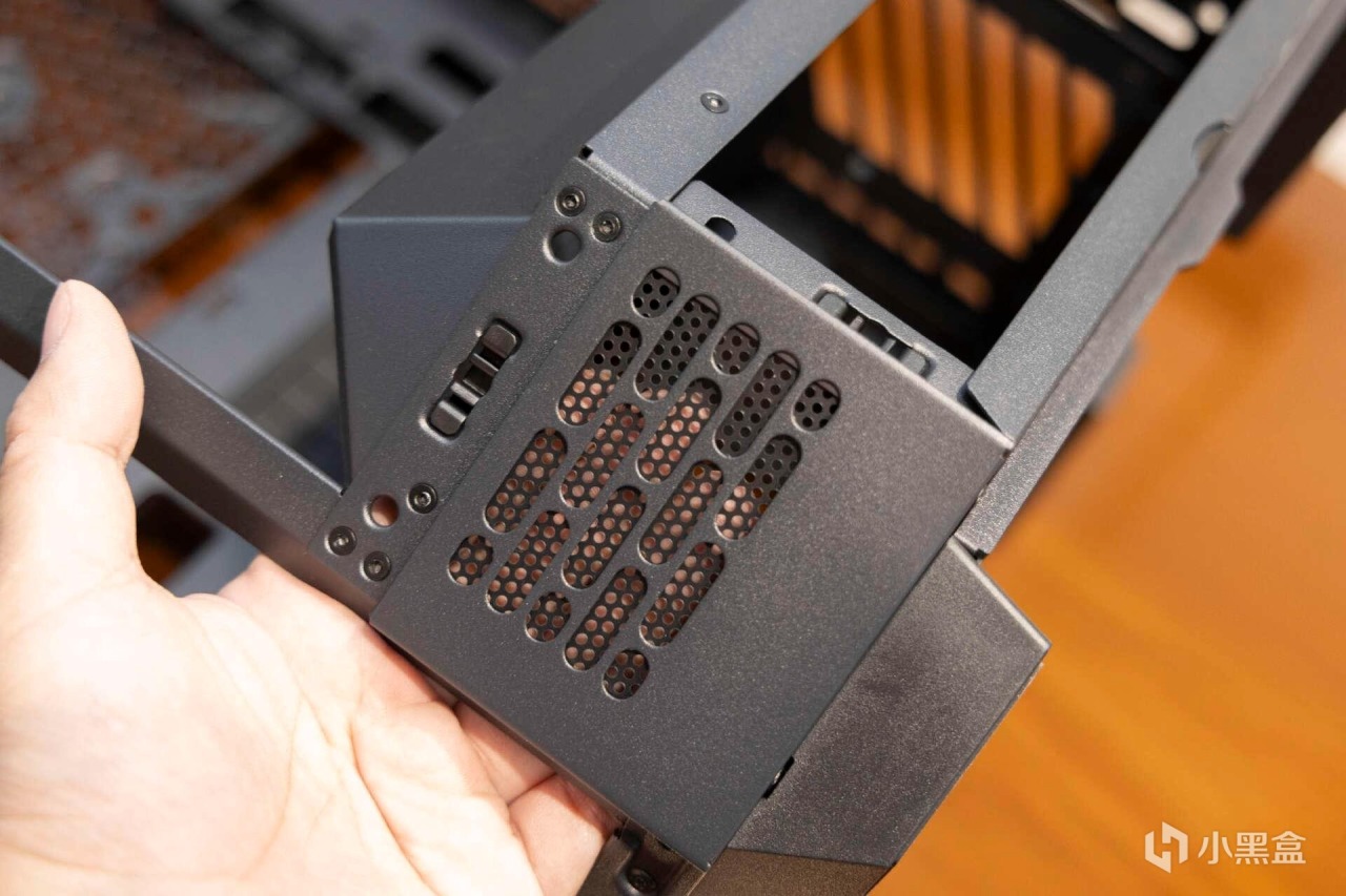 電源倉兩側的框架同樣進行了衝孔柵格結構,並且內部覆蓋磁吸式防塵網,散熱和防塵優化十分到位。