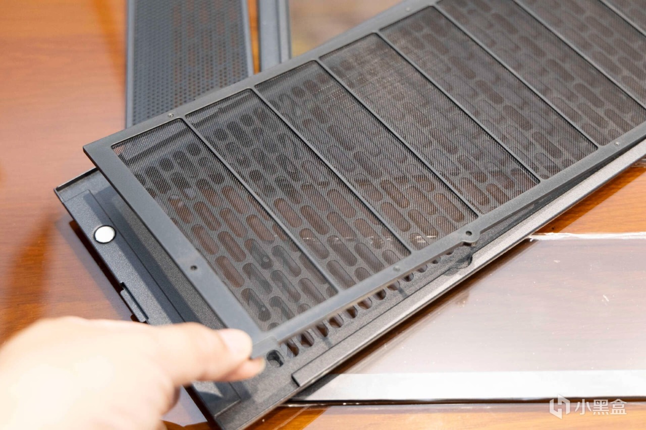 側面板內部提供了磁吸式的防塵網,嚴絲合縫,防護相當到位。並且防塵網帶有框架,後期清灰過程會非常省心,不用擔心變形損壞。