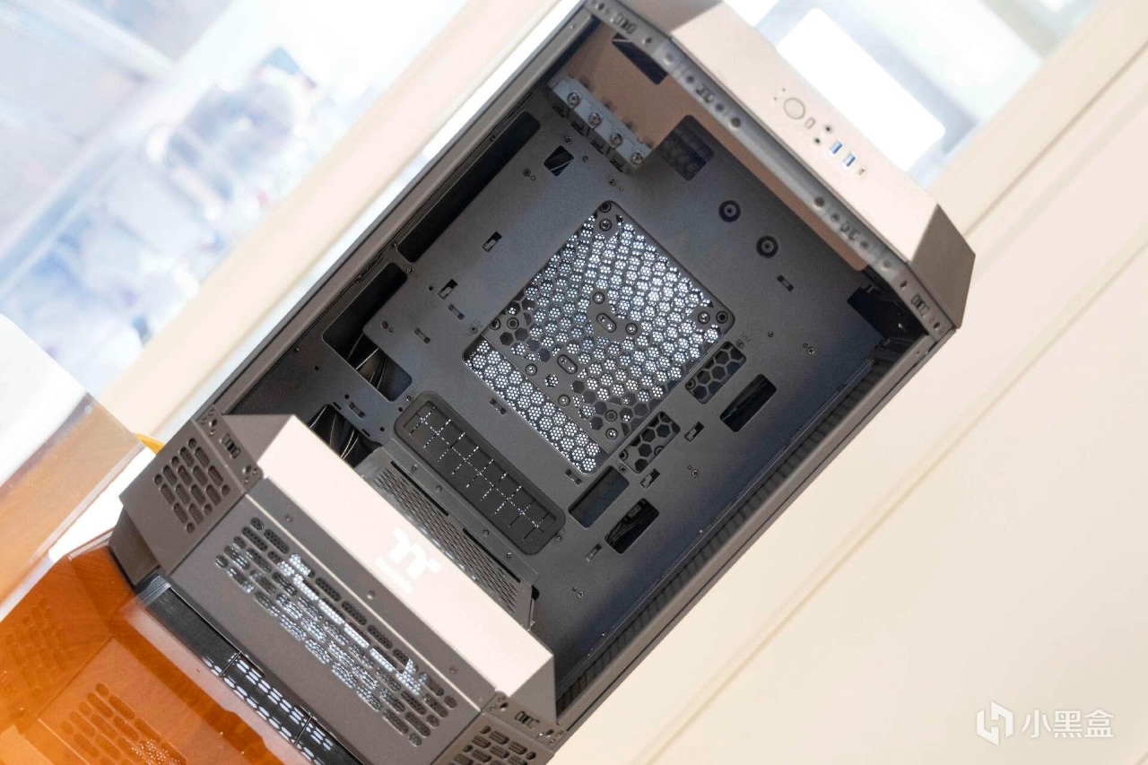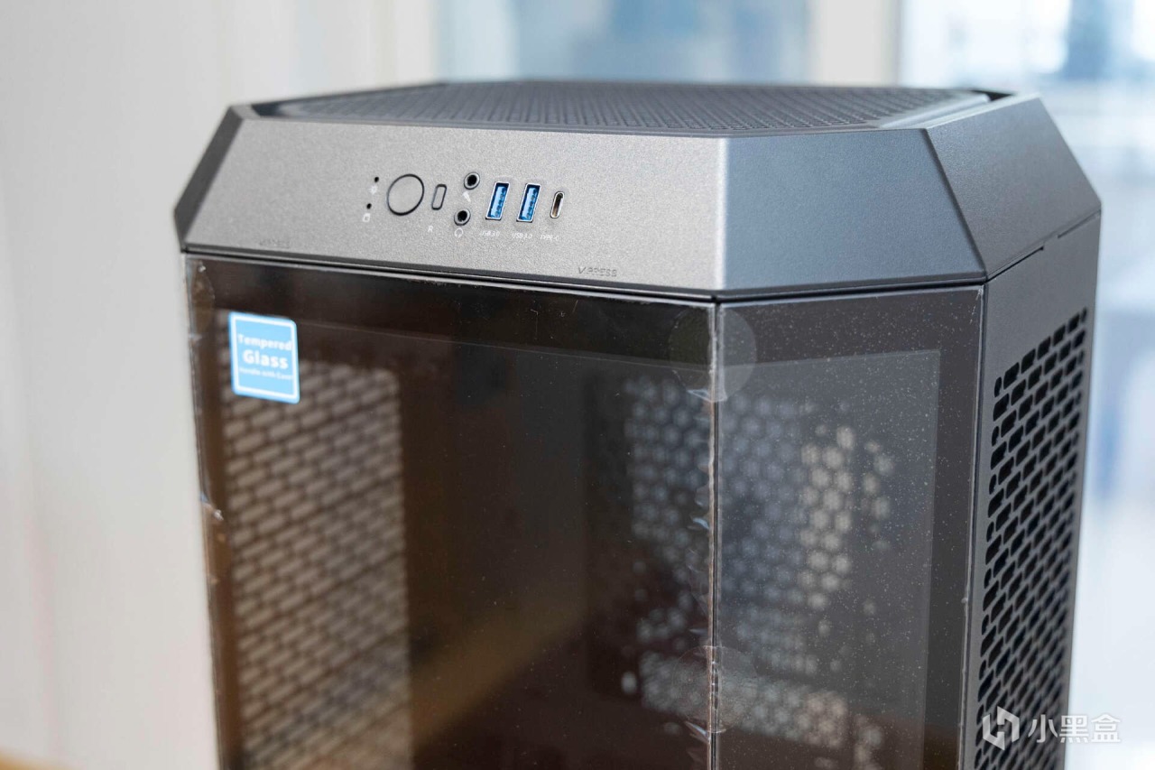 Tt Tower 300的IO模塊位於機箱頂部,提供了電源鍵,重啓鍵,USB 3.2Type-Cx1、USB 3.0x2和HD Audiox1。
