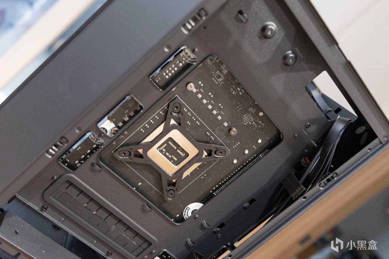 散熱器我選擇的是360水冷,可以看到360冷排固定後,在支架底部還預留了很大一塊空間。