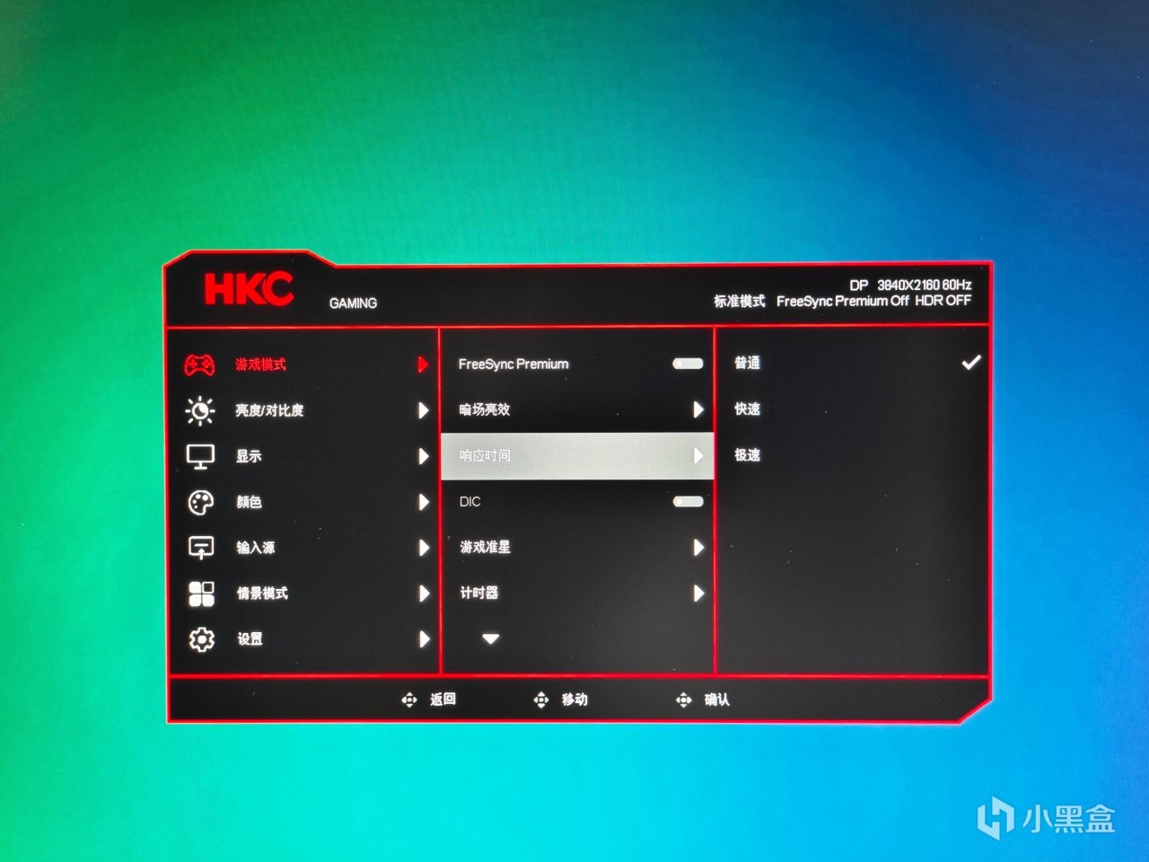在遊戲性能方面,這個顯示器提供了三個檔位:普通,快速,極速。我個人建議用快速檔即可。