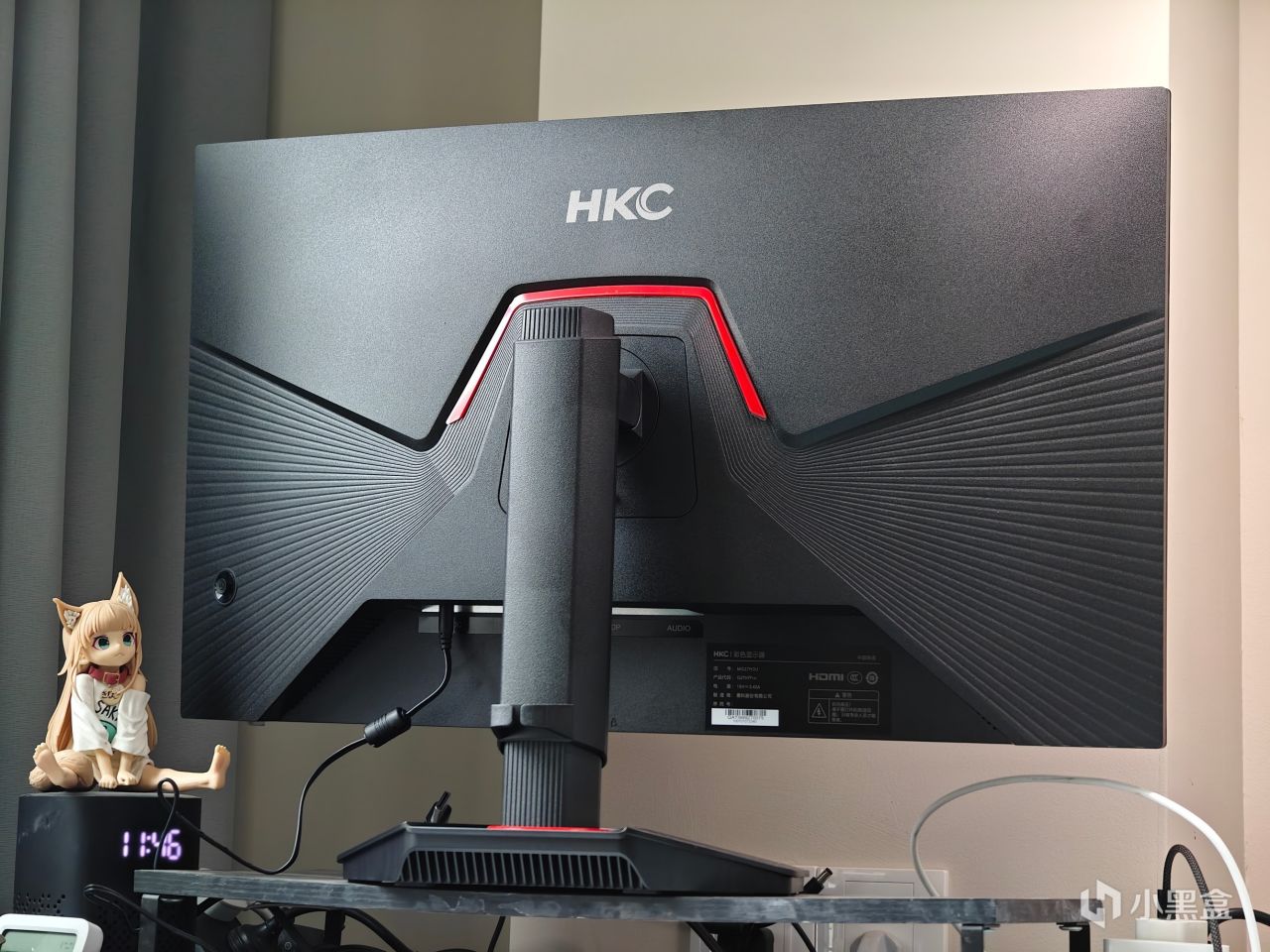 HKC的支架支持快拆結構,拿出來就裝上顯示器本體再接個底座就算組裝完成了,整個過程不超過5分鐘。基本屬於到手就用的狀態。