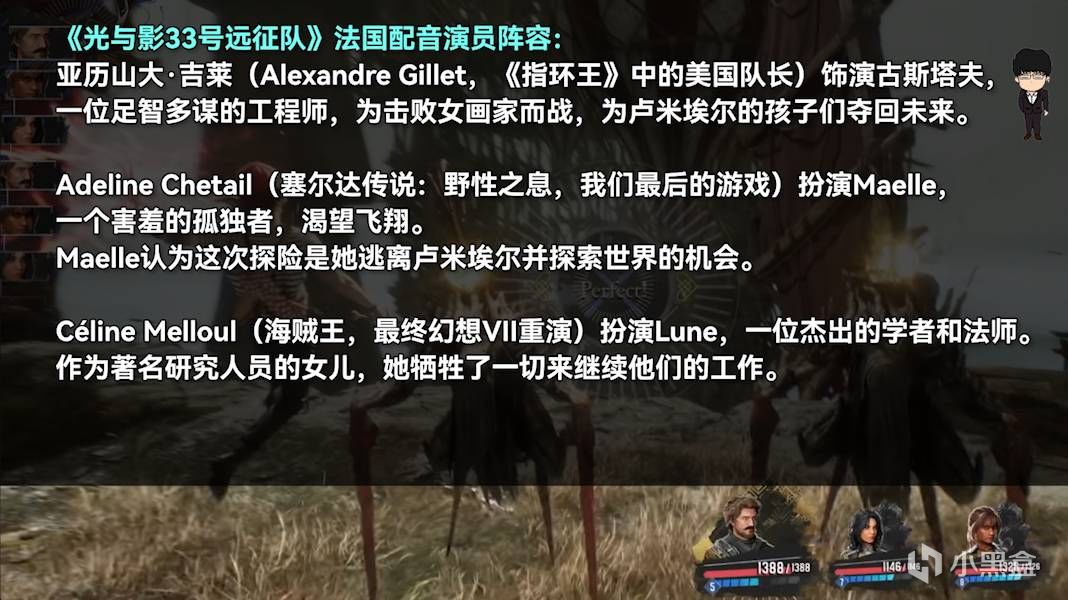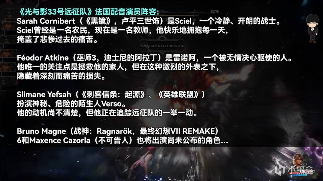 《光與影33號遠征隊》法國演員陣容宣傳公佈,別樣的服裝展示!今日開發商Sandfall Interactive公佈了《光與影33號遠征隊》的法國演員陣容宣傳片。宣傳片內容與英配陣容宣傳一致,除了演員陣容名字有所更改外,還別出心裁的讓所有角色都穿上了新服飾